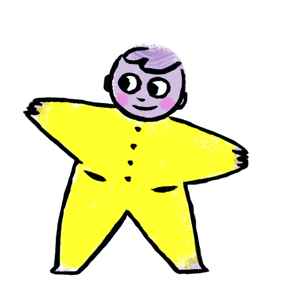 Arou est un petit personnage en forme d’étoile, tout jaune, simple à reconnaître, simple à aimer. Arou est un enfant qui sent le monde avec tout son corps. Il est joyeux, gourmand, curieux.